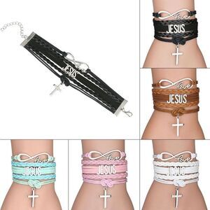 Jesus Loves You Infinity Brown Charm Bracelet Womens Girls Christian Cross New