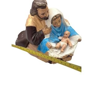 Jesus Mary Joseph Painted GILDED Nativity Statue Figure Nativity DAMAGED Vintage - Baby Jesus has broken arm and chipped foot - and chip on bottom back of statue SEE PICS