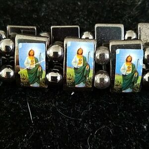 Details: Unbranded religious bracelet on stretch cord it has the picture of Jesus all the way around