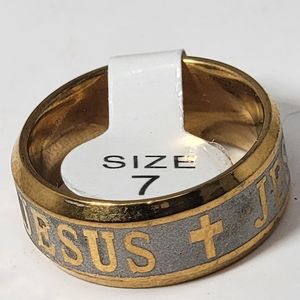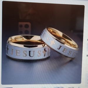 Women/Men Gold plated Jesus rings. Sizes 6"-13" . The centerpiece of these rings features a detailed Jesus Cross design. Made of high quality polish stainless steel that is resistant to tarnish. Easy maintenance and rings width is 8mm. Easy wear and comfortable fit.
