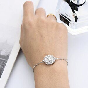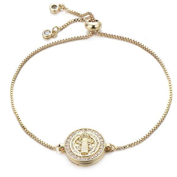 Yellow Gold Jesus Religious Cubic Zirconia Adjustable Bracelet