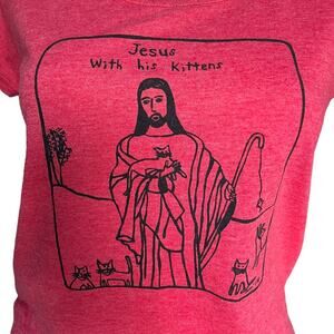 Jesus With his Kittens red short sleeve t-shirt size Small