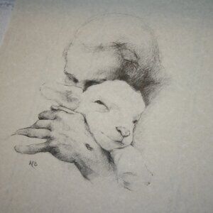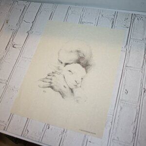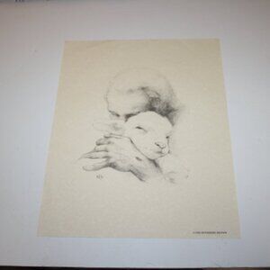 This poignant 11x14" art print by Katherine Brown, titled “Jesus and the Lamb,” beautifully illustrates Isaiah 40:11: “He tends His flock like a shepherd: He gathers the lambs in His arms and carries them close to His heart…” Rendered in a parchment-style finish, this 1982 sketch evokes quiet faith and gentle strength—perfect for prayer corners, spiritual bundles, or vintage gallery walls.