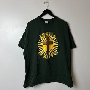 Jesus is Alive T Shirt Vintage Y2K Extra Large XL Adult Green Graphic Tee