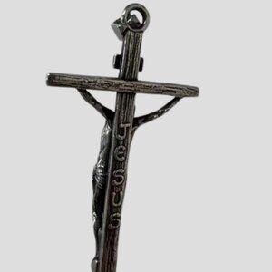 This high-quality stainless steel Holy Cross pendant features a finely detailed depiction of Jesus in a welded or branded imprint style. Designed for durability, the pendant is crafted with precision, ensuring a beautiful finish. The INRI inscription above the figure of Christ enhances its spiritual significance. This pendant does not include a rope chain, but it is compatible with a 0.118 inch / 0.3cm / 3mm or thicker chain, allowing for personal customization with a preferred chain style. Perfect as a meaningful gift, this amulet represents faith, strength, and devotion to the Lord Christ.