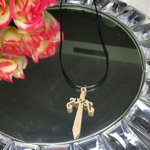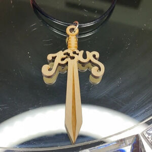 Jesus Wooden Sword Cross Pendent Necklace 18”