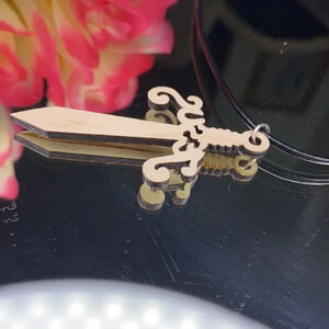 Hand crafted by designer Randy Hansen. Inspired by scripture John 1:14 The word became flesh and made His dwelling among us. Carved out of birch wood. Sword/Cross measures 2.5” black leather necklace measures 18” with 2” adjustable clasp. Unique one of a kind! Show that the word of Jesus is more powerful than any two edge sword! Makes great gift!