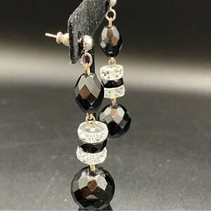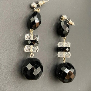 Jet Black Faceted Glass Beaded Dangly Earrings