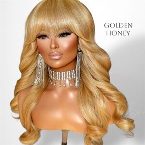 Jet Black Long Curly Yaki Bang Wig Full Cap Glueless Women’s Wig