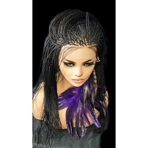 Jet Black Micro Million Braids Full Lace Wig NWT LONG