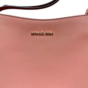 Beautiful Michael Kors crossbody in a vibrant coral pink/orange-pink saffiano leather. Features an adjustable strap, gold-tone hardware, and a structured shape that adds polish to any outfit. The perfect size for daily use while keeping it light and stylish.