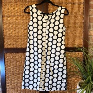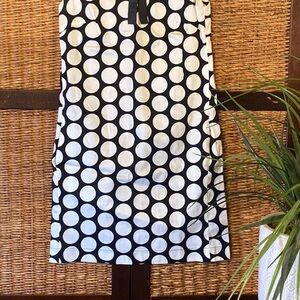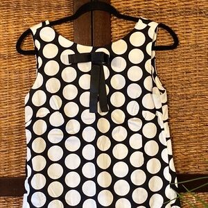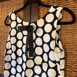 sleeveless rounded neck line with V in the at top of back zipper . Black bow at the neck line center of the chest. great condition