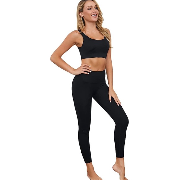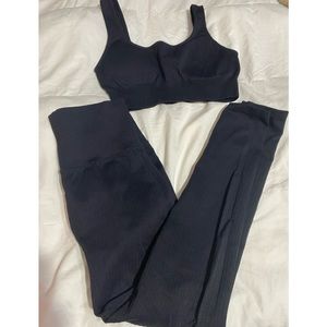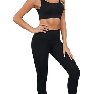 Jetjoy Exercise Outfits for Women 2 Pieces Ribbed Seamless Yoga Outfits Sports Bra and Leggings Set 2 Piece size medium Worn twice