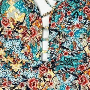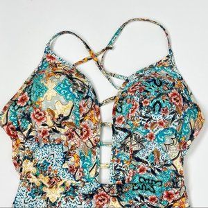 Jets By Jessika Allen Blue Multi Floral Plunge Swimsuit