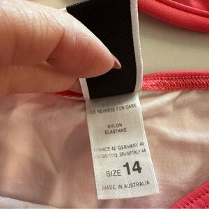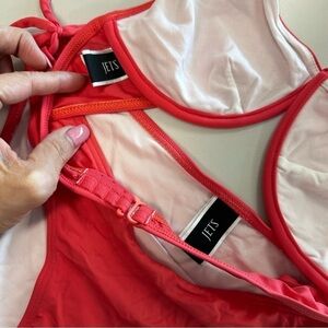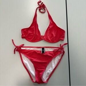 Jets Bikini. Beautiful Deep Reddish Pink Color. Size 14 bottoms, tops size 12 C/ D.