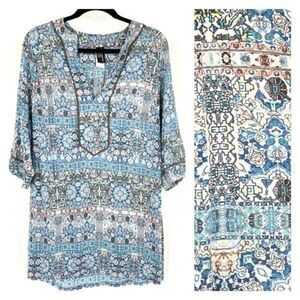 Jets by Jessika Allen Women's Geometric 3/4 Sleeve Tunic Top Multi-Color Size 6