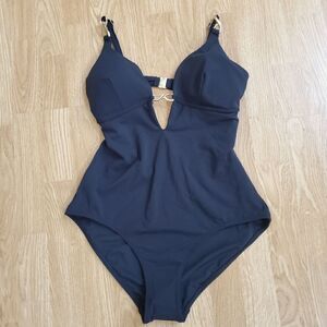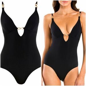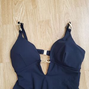 Deep plunge U-shaped neckline - Exclusive Jets logo hardware feature - Removable cups - Shelf bra for added support - Low scooped open keyhole back - Adjustable straps - Back clip Main Fabric: Ecocare Recycled Nylon - Recycled from standard yarn waste - Sustainably produced using less energy and water consumption - NILIT™ ECOCARE Lining Fabric: Sorbtek Reprieve Recycled Polyester - Produced from recycled water bottles - Sustainably produced using less energy and water consumption - REPREVE®
