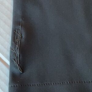 Jetset is known for their high fashion ski wear and these adorable black soft shell ski pants fit the bill. The sleek design of waterproof/windproof UV resistant material has 2 signature stars on the back. Polymide (Nylon) gives the waist and pants a nice stretch for comfort. Belt loops, side zip, wide leg. size kids 6