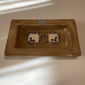 Jetson by essence Atomic Dice Mid Century Modern Ceramic Tray. NWT. Tan with funky dice drawing and raised dots. Designed in Australia. Dishwasher and microwave safe. Funky, mcm. 20x12.5 cm. Can be used as a jewelry tray, sushi tray, or just a funky decor piece.