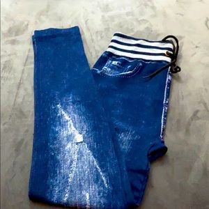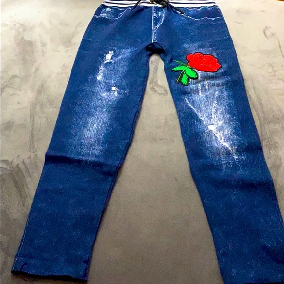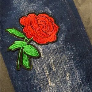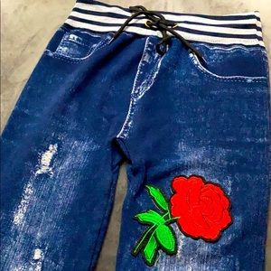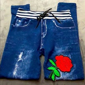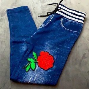 Blue Jeans Leggings with beautiful embroidered rose patches.