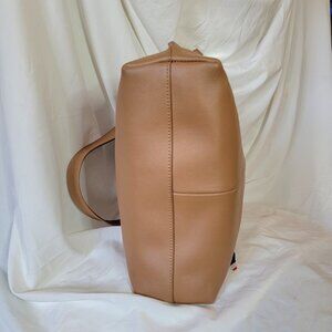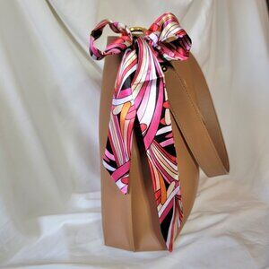 A minimalist soft leather tote bag with satin bow brings a pop of color and features a large interior with a zip pocket allow you to carry all of your essentials on the go. This bag comes with solid handles and reinforced stitching. With adjustable straps, you can quickly adjust for hanging on your arm carrying in your hand or over your shoulder. There is also a cute button fastener on the top of the bag to help keep the contents of your tote from falling out. It's not only functional but also fashionable.