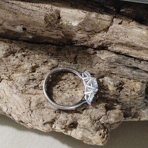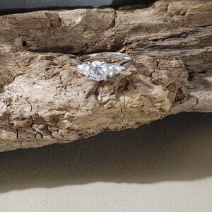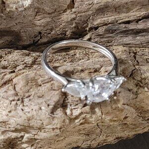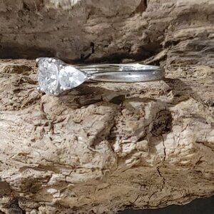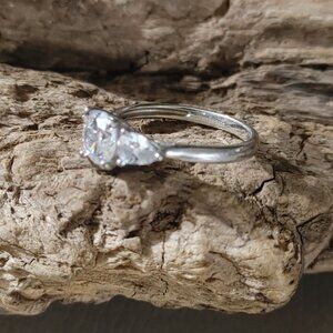 Jeulia Engagement 925 Sterling Silver Ring Round Pear Shaped Three Stone Size 9