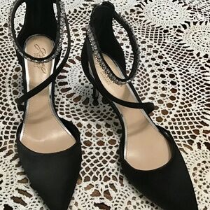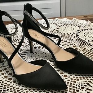 Jewel Badgley Mischka Alaia Pointed-Toe Kitten Heel~Black~Size 8.5