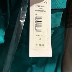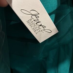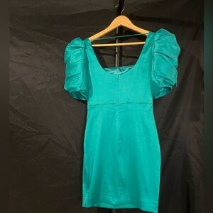 Jewel Badgley Mischka Bright Emerald Pleated Puff Sleeve Dress, size 6
