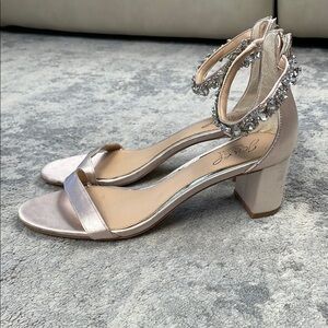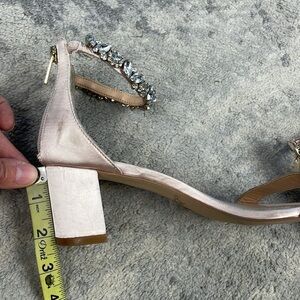 Jewel Badgley Mischka Catalina Block Heel Sandal Jewel Ankle Strap Satin Sz 8