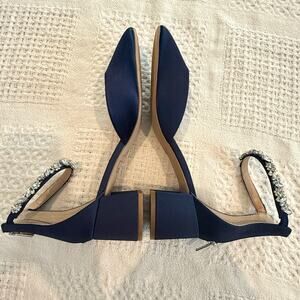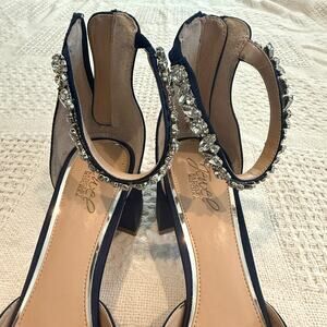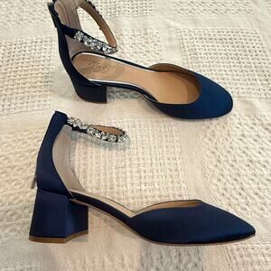 Jewel Badgley Mischka Cathleen 11 satin block heel evening pump 3093