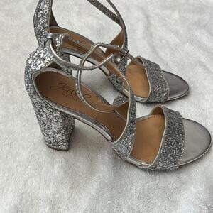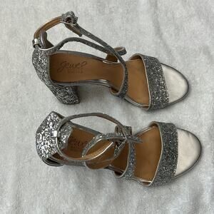Jewel Badgley Mischka Cook Metallic Glitter Evening Shoe Silver 9M