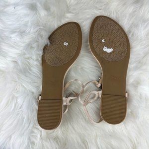 Features: open toe, shiny crystals, T-strap, delicate sparkle, thong style, flat silhouette, round toe, open toe, wedding, bridal, special occasion, event, party