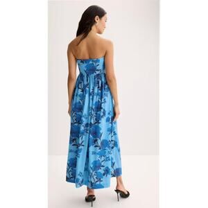 Make a statement in this stunning Jewel Badgley Mischka strapless maxi dress! The vibrant blue multi-floral print is perfect for any special occasion or a chic daytime look.