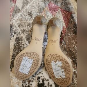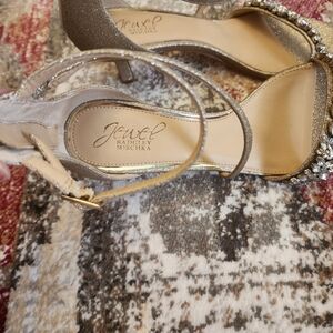 Shimmering gold heels with sparkling embellishments. Perfect for adding glamour to any outfit.