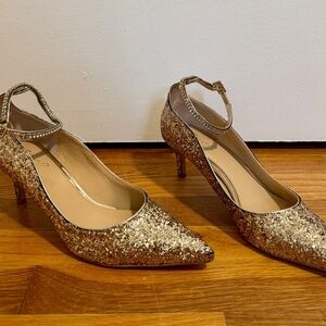 Jewel Badgley Mischka Jamila Gold Glitter Pump Evening Shoes Size 9 New With Box