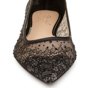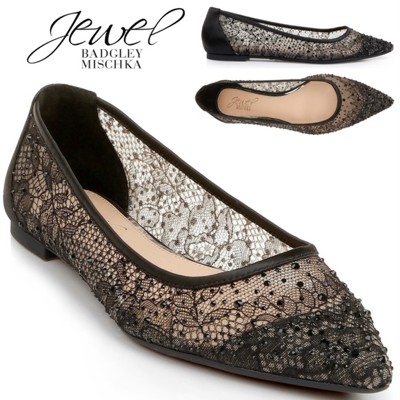 Jewel Badgley Mischka Juliana Lace Ballet Flat Black Evening Dress Shoes Low Heel Pumps