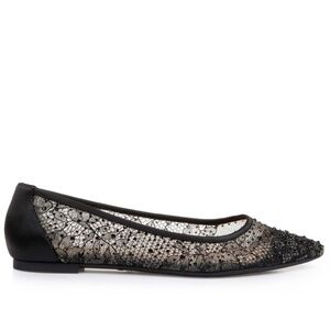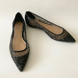 Jewel Badgley Mischka Juliana Lace Ballet Flat Black Evening Dress Shoes Pumps 7