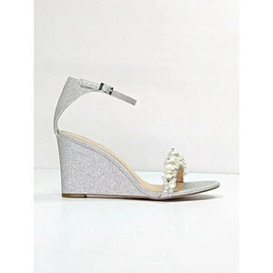 Jewel Badgley Mischka Laurence Women's Silver Wedge Heel Size 8 M (MSRP $119)