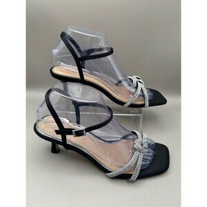 Jewel Badgley Mischka Maci Metallic Sandal with Rhinestone Knot Detail Black 7.5