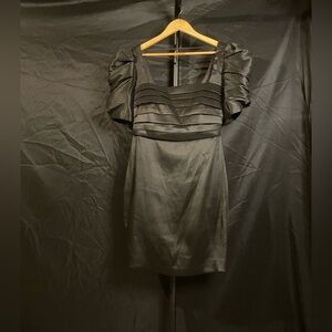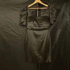 Jewel Badgley Mischka Pleated Black Mini Dress with Puff Sleeve dress size 0