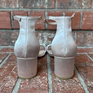 Perfect soft pink color. All jewels intact. Minor marks to the satin on the heels.