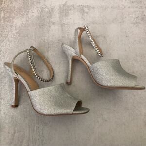Jewel Badgley Mischka Silver Lanie Ankle Strap Sandals NEW