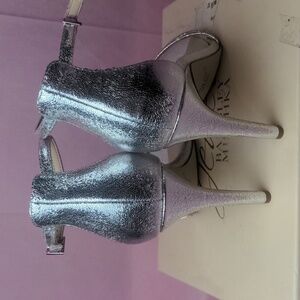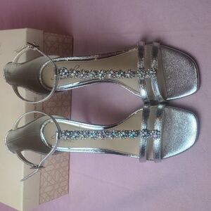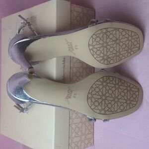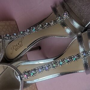 Jewel Badgley Mischka Silver T-Strap Farida Formal Heels size 8.5