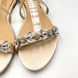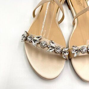 Jewel Badgley Mischka Size 8.5 Tessy Champagne Satin Flats Dress Sandals Shoes