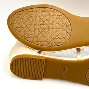 party special event evening dress up formal elegant wedding bridal bride bridesmaid prom pageant satin shoes flats heels pumps strappy gold silver shimmery sparkly sparkle glitter glittery bling jewel jewels jeweled rhinestone rhinestones crystal crystals bhldn gems ankle strap open toe low block kitten stiletto heel christmas metallic shiny pageant bhldn pearls embellished embellishments new years holiday women's womens size 8.5
