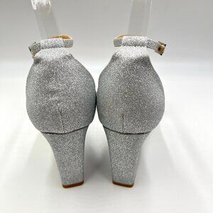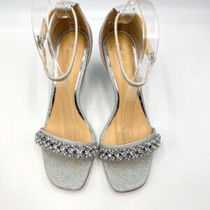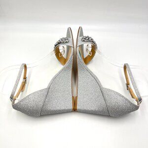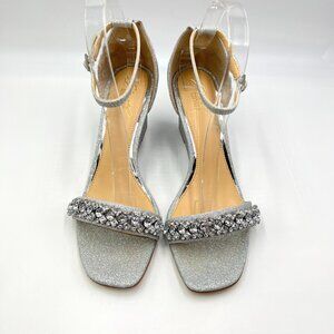 Jewel Badgley Mischka Size 9.5 Peggy Silver Jeweled Wedges Dress Sandals Shoes