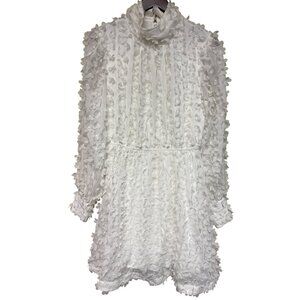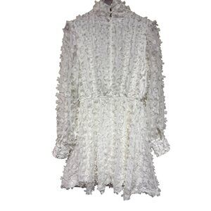 Jewel Badgley Mischka Women's Dress Mini Funnel Neck 3D Floral White Size 8