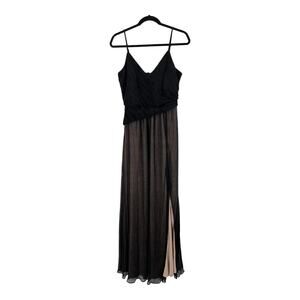 Jewel Badgley Mischka dress metallic maxi sleeveless side slit black size 10