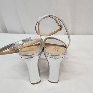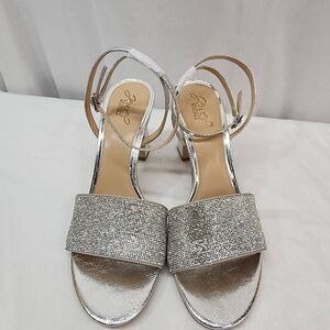 Jewel Badgley Mishka Size 11 Hattie Block Heel Sandal Ankle Strap Rhinestone Strap Open Toe Silver