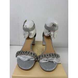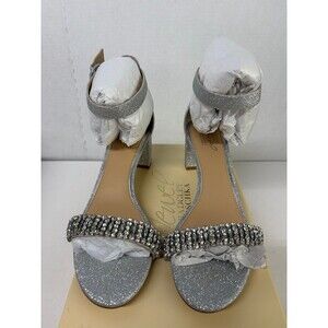 Brand new Jewel Badgley Women's Mischka James Silver Glitter Wedge Block Heel Sandals 9.5M